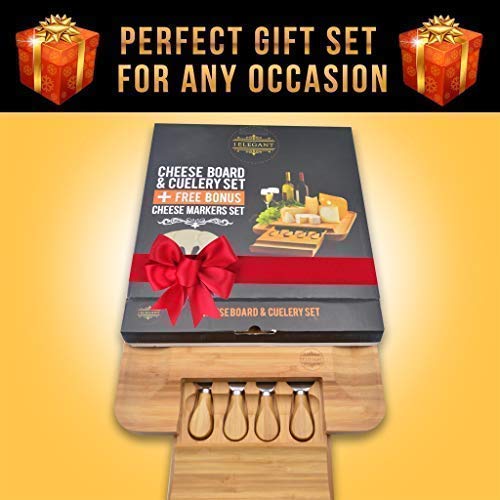★ THE MOST ELEGANT CHEESE BOARD FOR SERIOUS CHEESE LOVERS IS FINALLY HERE! Now You Can Impress All Your Guests and Host the Most Breath-Taking Cheese-Tasting Nights with the 1ELEGANT Ultimate Cheese Serving Tray! Designed to Offer You and Your Friends an Incredible Experience, This Luxurious and Ergonomic Bamboo Cheese Board and Cutlery Set Will Allow You to Present and Share Your Favorite Gouda, Feta, Roquefort or Edam in Unparalleled Style!★ LOOKING FOR THE MOST THOUGHTFUL & LUXURIOUS GIFT IDEA? Surprise Your Loved Ones Women, Men, Mom, Dad, Wife, Couple, Son, Daughter, Boyfriend, with Our Exclusive Cheese Tray and Cutlery Set and Offer Them a Stunning Way to Enjoy Their Favorite Cheeses, Will Surely Make an Incredible Make an Incredible Housewarming Gift for New Home, Bridal Shower Gifts, Engagement Gifts, Wedding Day Gifts, Anniversary Day Gifts, Birthday Presents, Christmas Gifts or Holiday! and the Best Part? It Comes in a Del