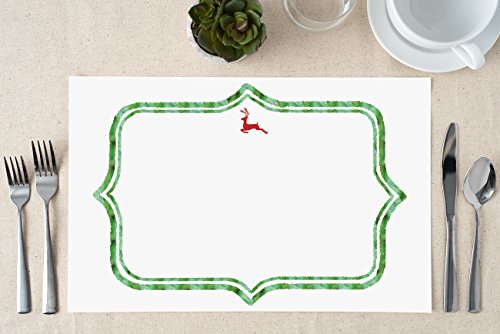 - Celebrate Holiday joy with red reindeer and green border artwork design.