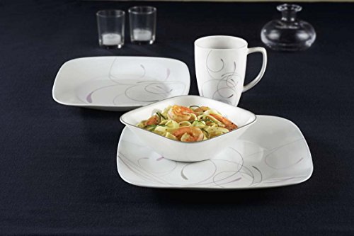 Corelle® SquareTM dinnerware features sleek, squared shapes with rounded corners and flared rims which fuse seamlessly with the traditional rounded centers. The result is a totally fresh, yet timeless look-versatile enough for every day dining as well as for entertaining. Splendor Vio 16-pc Set includes 4 each: 10-1/4" Dinner Plates, 8-3/4" Luncheon Plates, 22-oz Soup / Cereal Bowls, 12-oz - Porcelain Mugs - Dishwasher safe for long lasting patterns - Microwave and oven use for versatility - Patterns won't wash, wear or scratch off - Break and chip resistance for carefree durability - Plates and bowls made in the USASplendor Vio 16-pc Set includes 4 each: 10-1/4" Dinner Plates, 8-3/4" Luncheon Plates, 22-oz Soup / Cereal Bowls, 12-oz