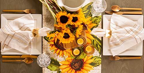 "A Classic Every Day & Every Season Look Our cotton table linens are available in a variety of sizes, colors, and styles to brighten your tablecloth seasonally or all year long. DII provides a large selection of napkins, tablecloths, table runners, and placemats to create the perfect custom table setting or compliment with similar designs and colors. You are sure to find the right piece to match you décor and style. With quality in every thread these durable, long lasting kitchen textiles are a must for hosting friends and family, having a BBQ, birthday, baby shower, wedding, or for every day meals. Tablecloths That Have You Covered No matter the size or shape of your table we have something for you. With five sizes to choose from and two round tabletop options you can add color and interest to your dining room. Our table cloths are 100% cotton with a 1” hem and mitered corners. Let your dinnerware stand out with our color fast, wrinkle resistant tablecloths, sure to make a statement for family and guests. Your table can be dressed up or down to create the perfect place setting, whether for a family gathering, BBQ, or party these can be used indoor or out. Table Runners Our table runners provide a great place to set down platters to prevent spills and scratches on your tabletop while adding style and flair. Available in two sizes these can be used on more than just the dining room table; place on entryway, foyer, console, or coffee table surfaces while still showing off the furniture. Set plants or other centerpieces atop the runner to update any space with a fresh new look. Napkins Finish off your tabletop with matching napkins, made oversized to handle any meal no matter how messy. We make it simple to coordinate the perfect table setting, mix and match with our tablecloths and table runners to complete the look for your setting. All of these products are machine washable simply follow these care instructions: machine wash cold separately. To minimize the shrinkage, tumble dry low, remove just prior to being completely dry. Low iron if needed. So Many Great Options To view our entire selection of kitchen & tabletop linens search: DII Tabletop or visit our store front by clicking the DII link at the top of the page to view our other collections. Other Collections Include: Pet Storage Indoor & Outdoor Rugs Ceramics Throws Laundry Bins Bath Linens"For your table - This table runner measures 14x72" in size, appropriate for a table that can seat 4-6 People.