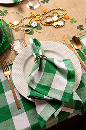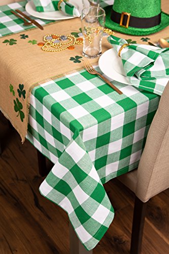 ADDS A FINISHING TOUCH - Our woven tablecloth features classic buffalo check in Shamrock Green (check measure approx. 2") with 1" hem with mitered corners.
