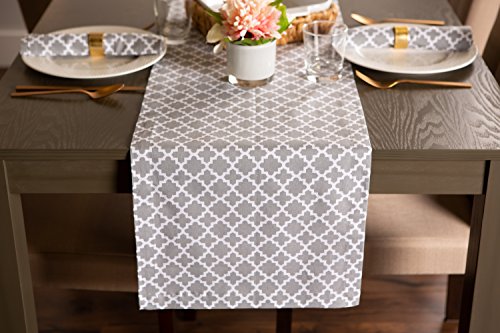 DII lattice cotton table runners come in a variety of colors & sizes. These table runners are perfect for picnics, parties, showers, dinners, everyday use and more. Great for entry way tables, low book shelves, dining tables, or other surfaces of your home as well. All of DII cotton table runners have a 1 inch folded hem and mitered corners. These table runners are machine washable for easy clean up and use. Coordinate with the matching DII napkins and tablecloth for a complete look. Find DII full selection of table runners by searching for "DII table runners" or click the DII link at the top of the page.FOR YOUR TABLE - This printed table runner measures 14x108" in size, appropriate for a table that can seat 8-10 people.
