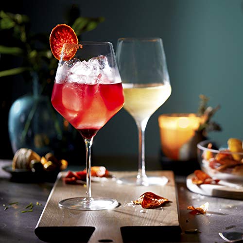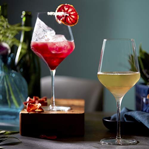 The tall pulled stem creates a seamless transition up to the angular bowl and finely honed rim. The bowl's unique shape provides an ingenious visual cue for consistent pour control and allows the wine to breathe and release its aromas. Perfect for serving Cabernet Sauvignon, Merlot, Shiraz, Zinfandel, and more, these versatile glasses can also be used for serving chilled water, cocktails, and more.